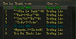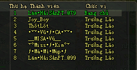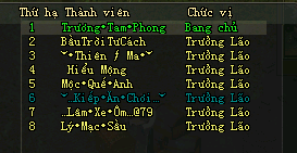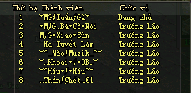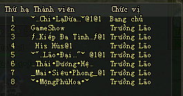- Danh sách thành viên bang hội tham gia: Bao gồm Bang chủ và 7 trưởng lão