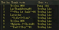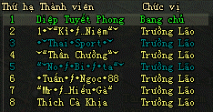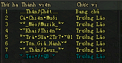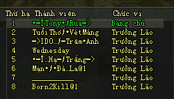 | Máy chủ | Bang Hội | Thành viên |