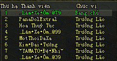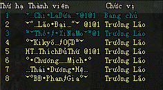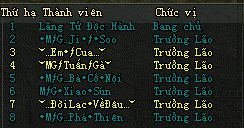 - Danh sách thành viên bang hội tham gia: Bao gồm Bang chủ và 7 trưởng lão