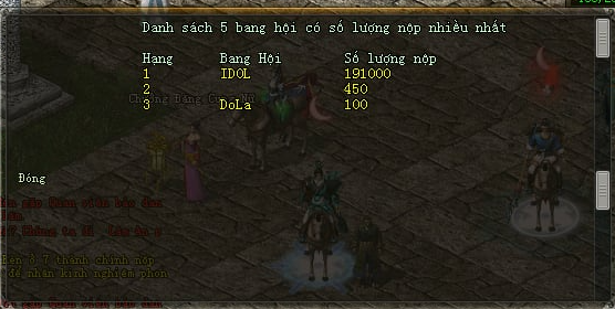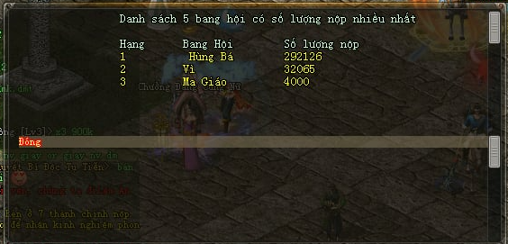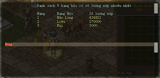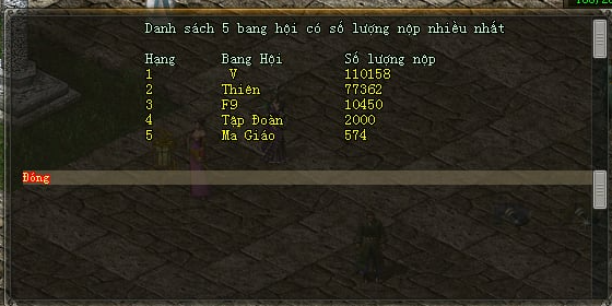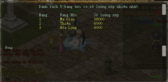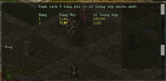 - 2 Bang hội xếp hạng Khiêu Chiến Lệnh hạng 5 và 6 trên toàn máy chủ thì đấu THĐNB 20 giải Cao Cấp.